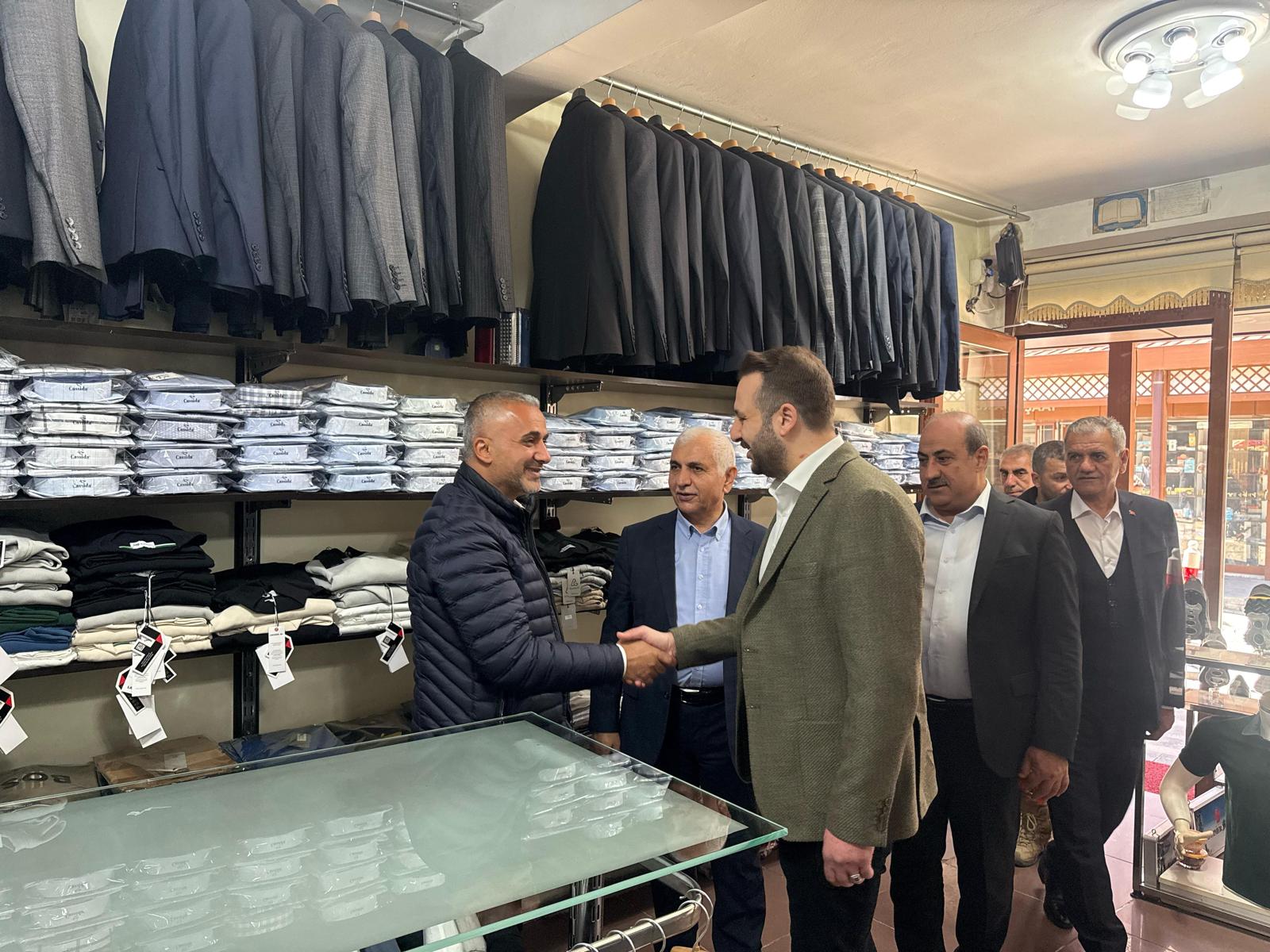 Heyet daha sonra ilçe merkezinde ki esnafı ziyaret ederek onların ve vatandaşların geçmiş bayramlarını kutladı ve sorunlarını dinlediler.