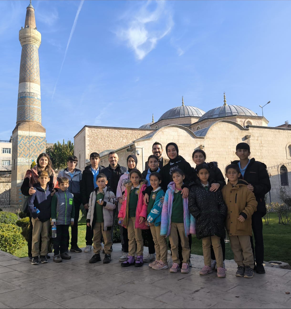 Yemeğin ardından her iki okulun öğrencileri öğretmenlerin araçlarıyla Anadolu Selçuklu mimarisinin eseri tarihi Ulu Camiyi ziyaret ettiler.