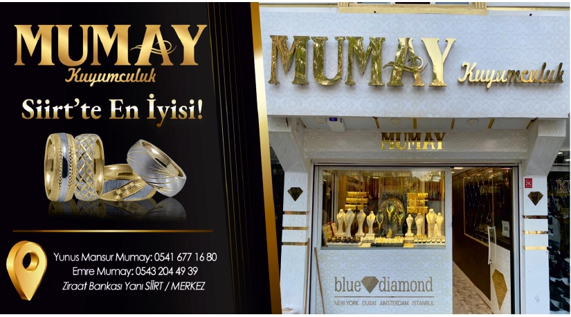 Mumay Kuyumculuk, Siirt’te yıllardır kaliteli takıları ve şık tasarımlarıyla müşterilerinin beğenisini kazanıyordu. Ancak bu taşınma ile birlikte, yeni mağaza konsepti ve büyük mağaza alanı ile sektördeki yerini pekiştirecek. Yeni mağazada, Siirt’teki diğer kuyumcularda bulunmayan çeşit çeşit takılar, altın ve diğer değerli aksesuarlar sergilenecek. Ayrıca, Blue Diamond markasının Siirt’teki satış noktası olarak da önemli bir hizmet veriyor.