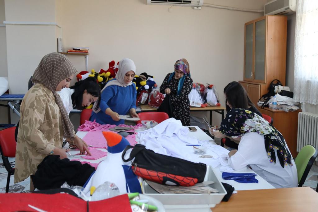 Siirtli bayanlar Van ilinden gelen bayanlara pelüş oyuncak yapımı konusunda eğitim verdiler.