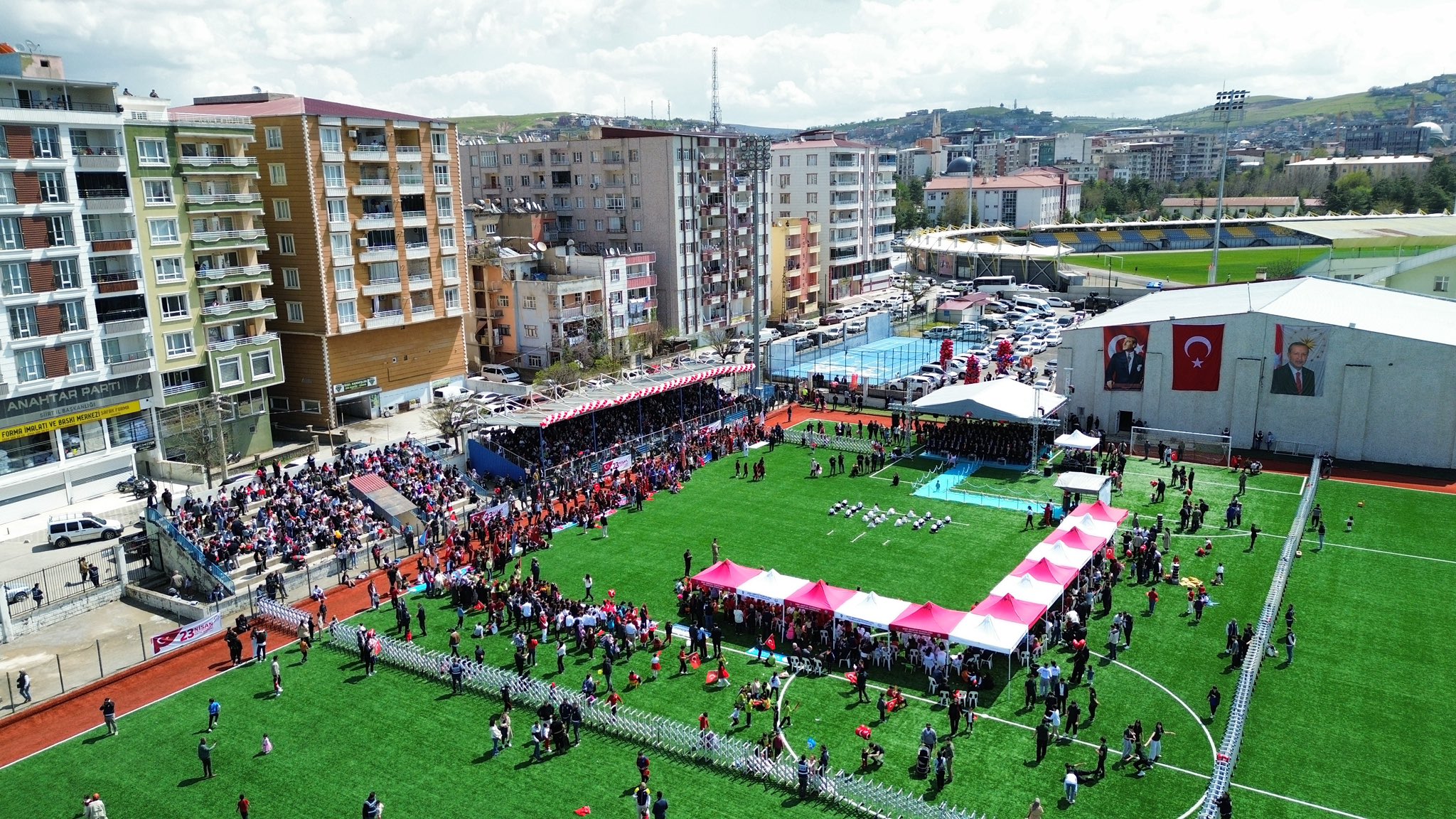 Törenler daha sonra 2 No’lu sentetik çim sahada gerçekleştirilen etkinliklerle sürdü. Programa Siirt Valisi Dr. Kemal Kızılkaya, il protokolü, öğrenciler ve vatandaşlar katıldı.