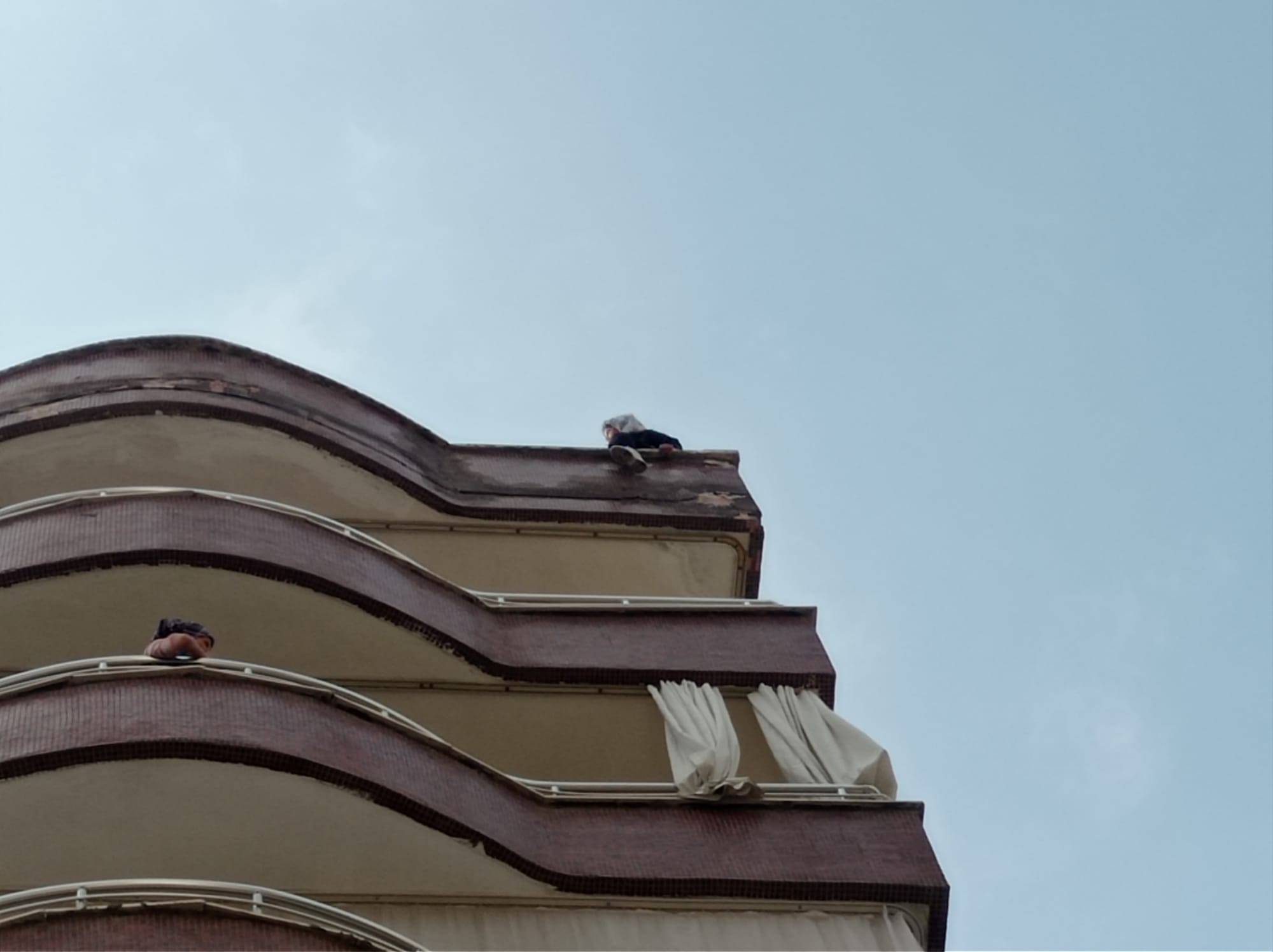 Güres Caddesinde 7 katlı bir apartmanın terasına çıkan anne feryat etmeye başladı ve kendisini buradan atlayacağını söyledi. Genç kadını gören vatandaşlar itfaiye ve polis ekiplerine haber verdi. Olay yerine gelen ekipler genç kadını ikna ederek bulunduğu yerden inmeye ikna etti.