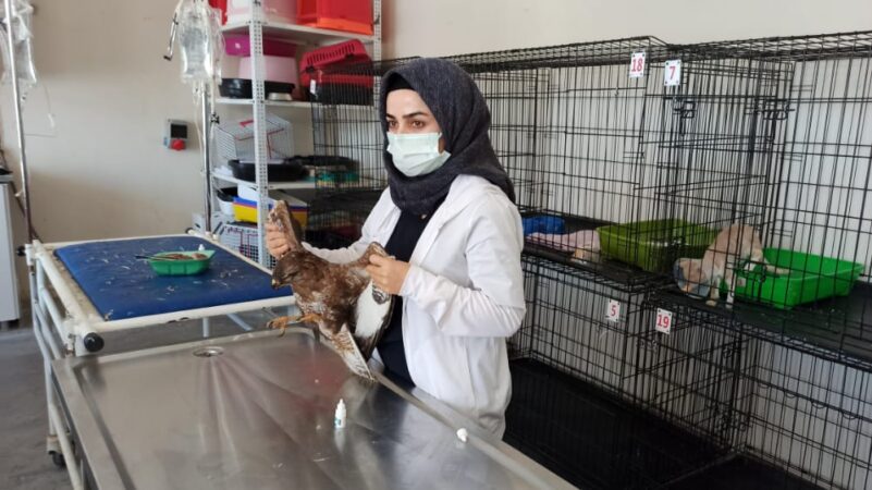 Siirt’te kaçak avcılar tarafından vurulan yaralı şahin tedaviye alındı.
