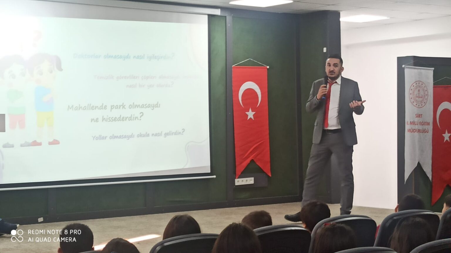 Eğitimde, verginin toplumsal kalkınmadaki kritik rolü ile vergi bilinci düzeyinin artırılması gerektiği vurgulandı. Söz konusu eğitimler, 2024-2025 eğitim-öğretim yılı boyunca il ve ilçelerde devam edecektir.