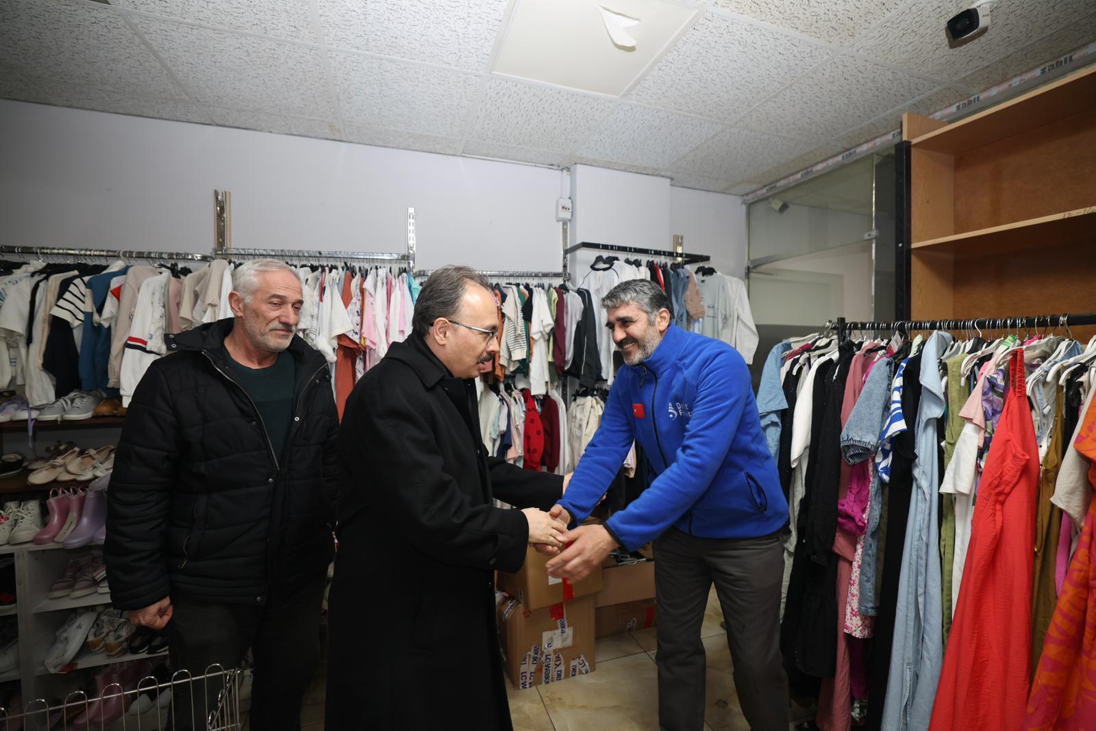 Geceleyin gerçekleşen ziyarette vali Kızılkaya, mağazayı gezdi ve dar gelirli vatandaşlara verilen giysileri inceledi.